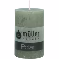 Müller Kerzen Polar Stumpenkerzen, 58 x 90 mm, Raureif-Effekt 5460906260 , 1 Packung = 6 Stück, Farbe: efeugrün